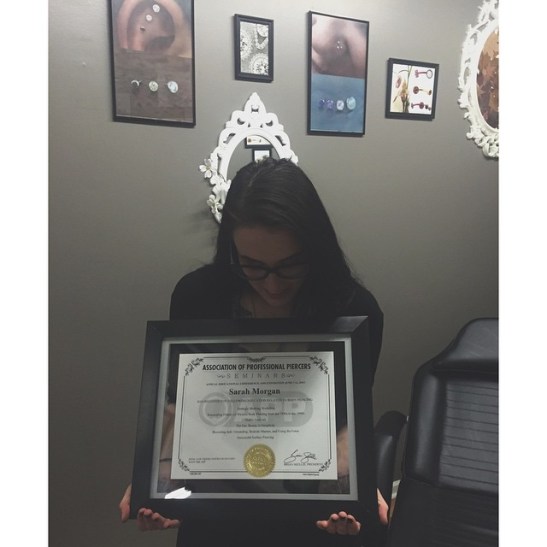 Association of Professional Piercers Conference 2015 certificate