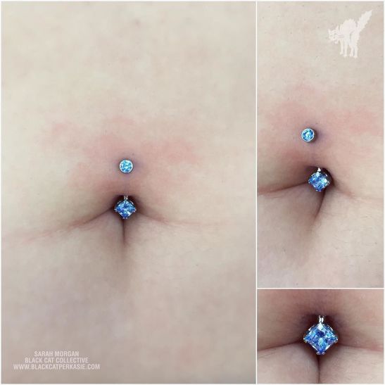 a beautiful new navel piercing for Rachel ♡ This Princess-Cut Arctic Blue navel curve from Anatometal fits her perfectly (: via Instagram http://ift.tt/1YILfyZ