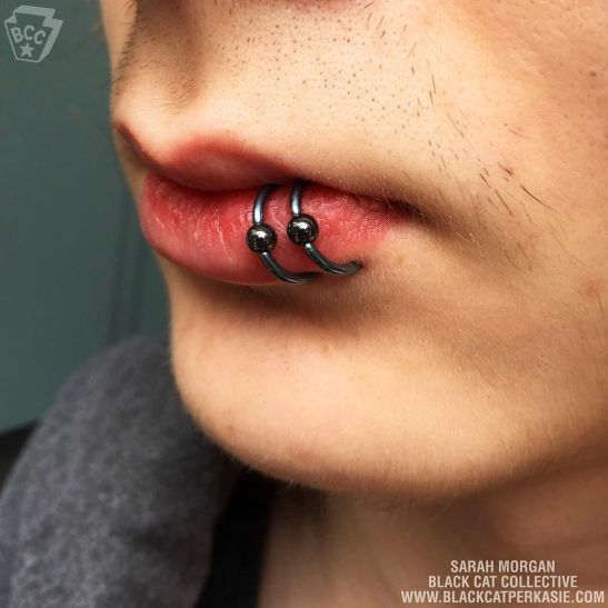 Braeden’s fancy healed lip piercings ♡ Pierced a few months back with some jazzy Neometal, we swapped them out today to some Niobium captive bead rings from SM316, anodized here at Black Cat Collective ⚡️✔️ via Instagram http://ift.tt/1NbNf1r