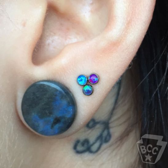 healed and happy triple earlobe piercings for our homie Amanda, with NeoMetal opals 💜💙💚 via Instagram http://ift.tt/2m6aLEM