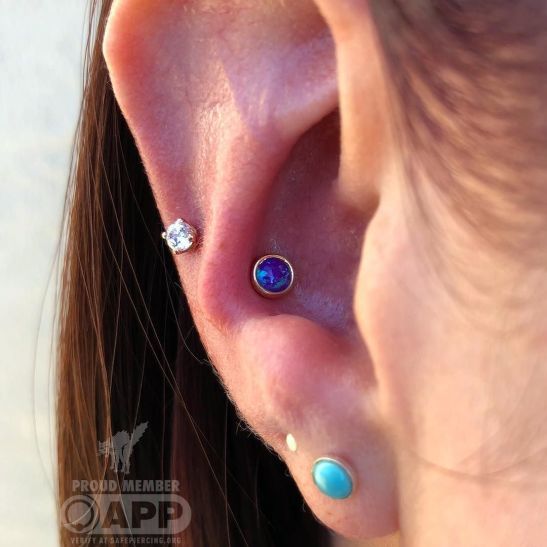 a new conch piercing for Catie, with solid yellow gold jewelry from Body Gems ♡ •
