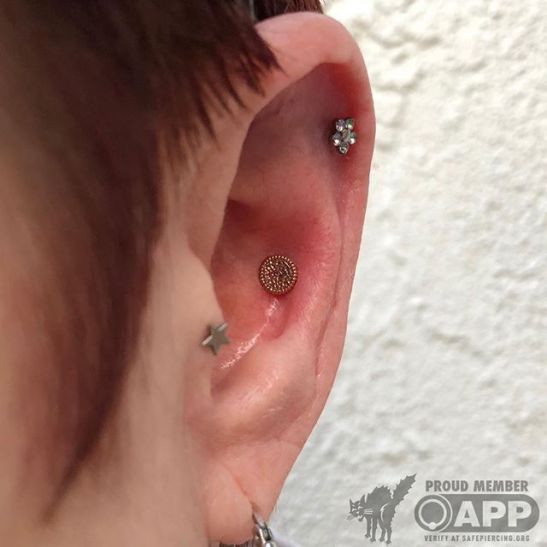 #blackcatcollective #blackcatperkasie #perkasiepiercing #associationofprofessionalpiercers #appmember #safepiercing #conchpiercing #helixpiercing #mayajewelry #neometal #ilovemyjob via Instagram